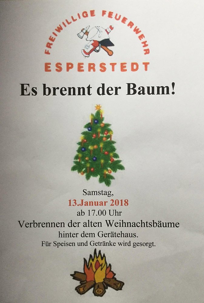 Das fröhlich Weihnachtsbaum verbrennen findet hier am 13. Januar statt, wie Ortsbürgermeister Dieter Kroneberg im Gespräch mit kn verriet. Zwar vergaß kn nach der Uhrzeit zu fragen, aber ab 17:00 Uhr dürfte es sicher bald beginnen.