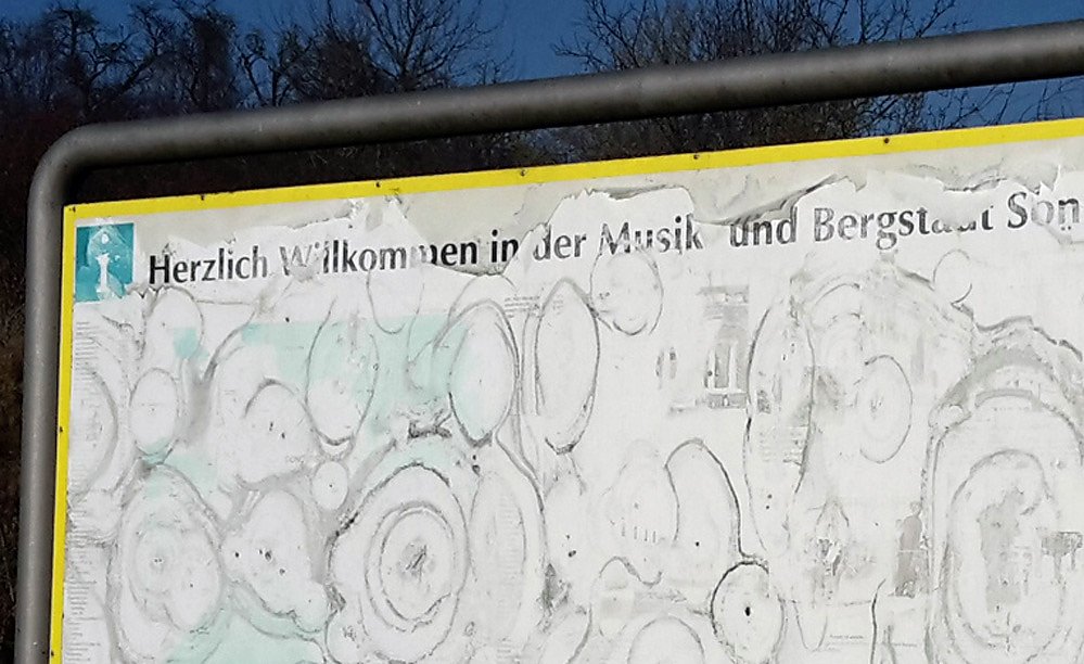 Wie beim Puzzle, wenn man einen größere Ausschnitt sieht, merkt man recht deutlich, dass es wohl kein Gemälde ist. Denn so will die Stadt Sondershausen bestimmt nicht seine Gäste begrüßen.