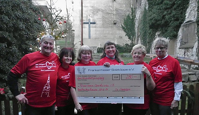 Die Frankenhisser Solzköppe spielten Weihnachtsmann. Das Geschenk ist ein Scheck über 250,- Euro.