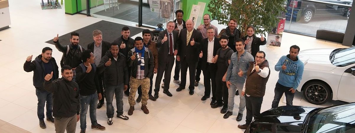 Drei Monate später dann der erste "große Bahnhof" in der Skoda-Autowelt: Ein Chef der Bundesagentur für Arbeit, ein Ministerpräsident und darüber hinaus noch alles an lokaler Polit- und Wirtschaftprominenz, was die Region aufbieten konnte. Mittendrin junge Flüchtlinge, die sich auf den Weg zur Berufsausbildung begeben wollten. Einstiegsqualifizierung hieß das Zauberwort zu dieser Zeit. Die Zahl der Willigen wechselte, mal wurde von 16, mal von 14 Syrern, Irakern und Eritreern berichtet.