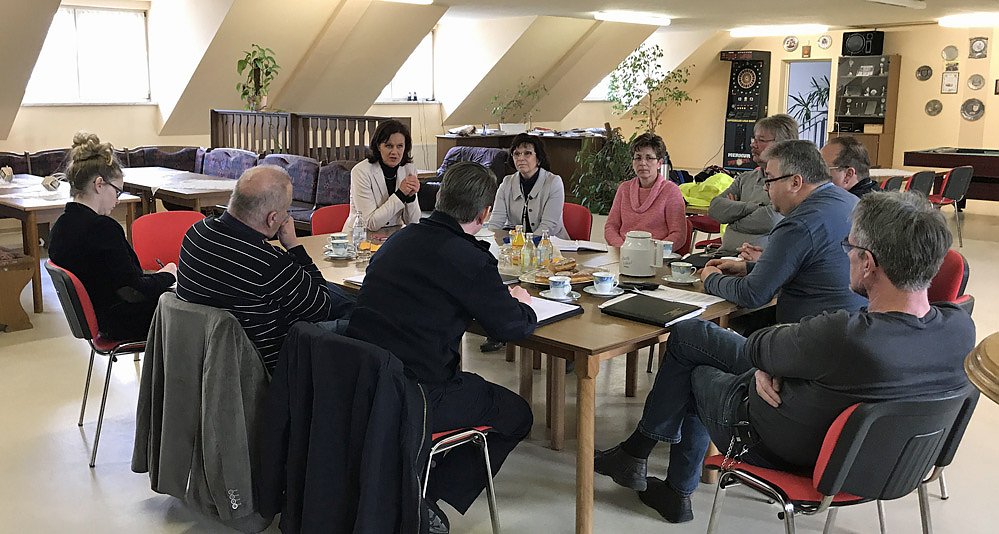 Gemeinsam mit Frau Bürgermeisterin Christine Zimmer (CDU), dem für Brand- und Katastrophenschutz zuständigen Referatsleiter des Landesverwaltungsamtes Herrn Rüdiger Kösel, dem Verwaltungsleiter des Kyffhäuserkreises Herrn Dr. Heinz-Ulrich Thiele und dem Kreisbrandinspektor Herrn Jonas Weller kam sie mit den Führungskräften der Feuerwehr Artern ins Gespräch.