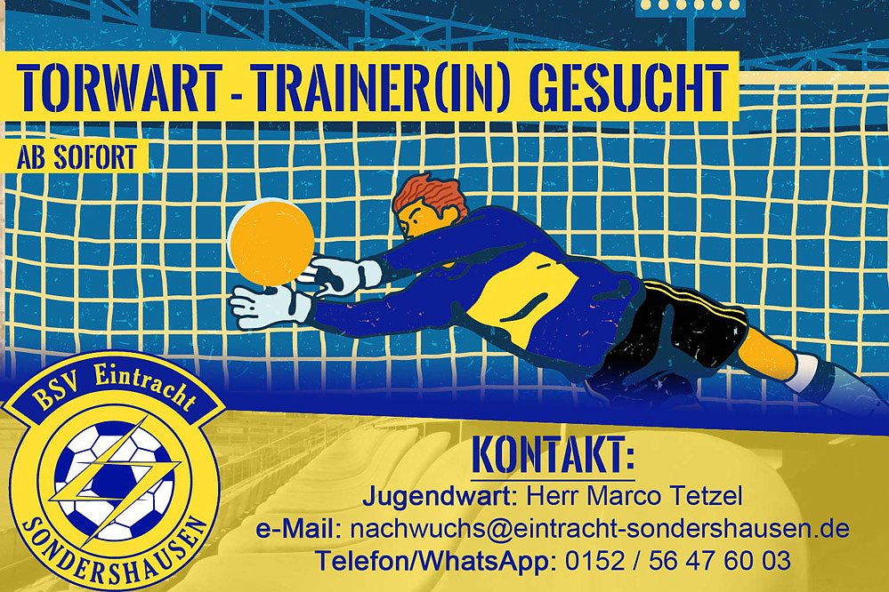 Diesbezüglich sucht der BSV Eintracht Sondershausen e.V. ab sofort einen oder mehrere engagierte Torwarttrainer.