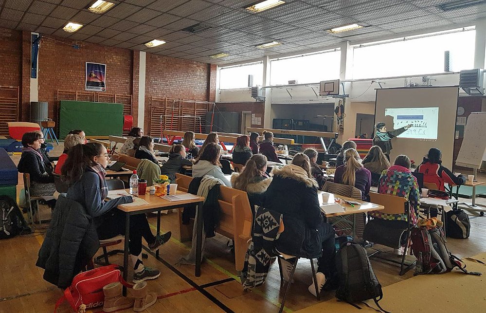 Hinzu kamen noch 13 Damen in der Fortbildung für Kampfrichter hinzu, da die Lizenz alle 4 Jahre erneuert werden muss. Die Turnhalle war somit mit 52 Teilnehmern rege gefüllt. Eine echte Herausforderung für die Organisatoren!