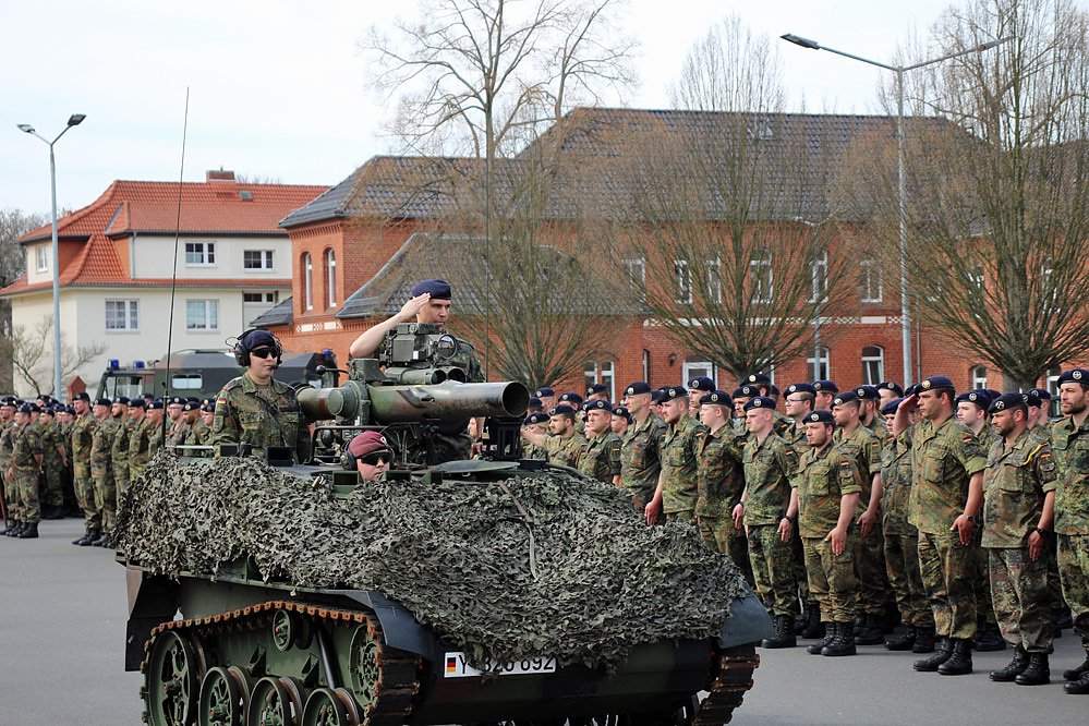 Für den scheidenden Kommandeur Oberstleutnant Rölle hatte man noch ein zweite Überraschung parat. Mit einem "Wiesel" wurde er vom Appellplatz gefahren. Beim Appell erhielt er von Oberst Hoppe eine förmliche Auszeichnung für die geleistete gute Arbeit und zwei Tage Sonderurlaub.