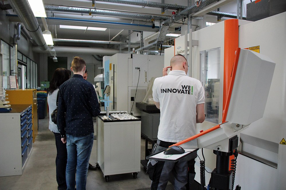 Fast 20 Auszubildende (von über 50 bei WAGO SDH), die alle freiwillig an ihrem freien Tag teilnahmen, wie sie betonten, von WAGO führten die Gäste zuerst durch die modernen Produktionsanlagen. Dabei standen Sie den Frage Rede und Antwort. Da konnte man sich über den hohen Automatisierungsgrad der Produktion überzeugen.