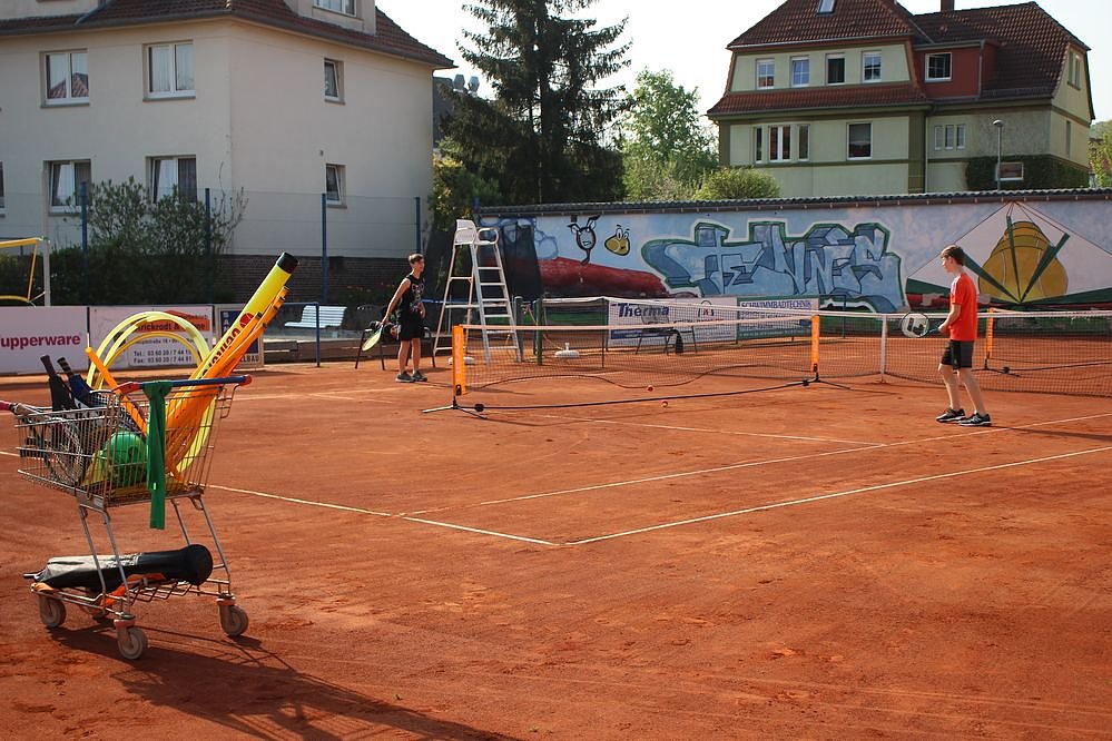 Hier kann man noch bis 14:00 Uhr und bei Bedarf sogar etwas länger mal "Schnuppern" ob nicht Tennis die geeignete Sportart ist.