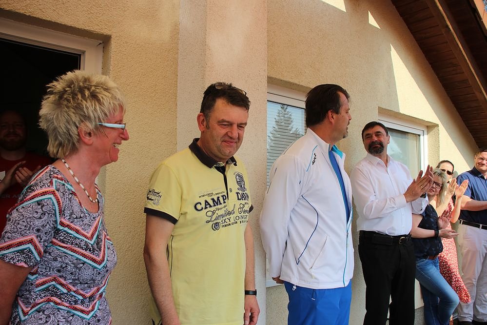 Vereinsvorsitzender Nico Biebert begrüßte die Gäste, so Vereinsmitglied und Landtagsmitglied Babett Pfefferlein (Grüne). Sie hatte sich in Erfurt für Lottomittel stark gemacht, damit die Terrasse einen neuen Boden bekommen konnte.