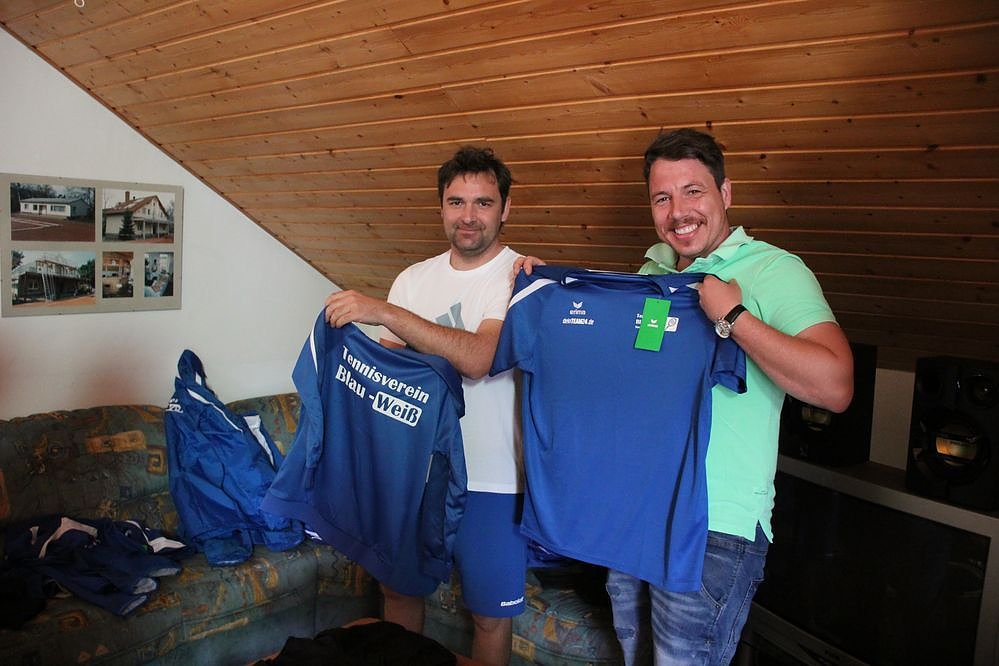Hier lässt sich Sportkoordinator Markus Kellner (li.) vom Kyffhäuser Kreissportbund von Marko Minalga die ersten "Handgriffe" beim Tennis erläutern.