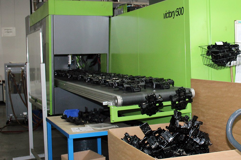 Hauptprodukt sind Kunststoffformteile die auf Spritzgussmaschinen gefertigt werden. Die Teile werden zu einem großen Teil in der Autoindustrie eingesetzt. Obige Maschine fertigt gerade das Plasteinnenleben einer Kopfstütze.