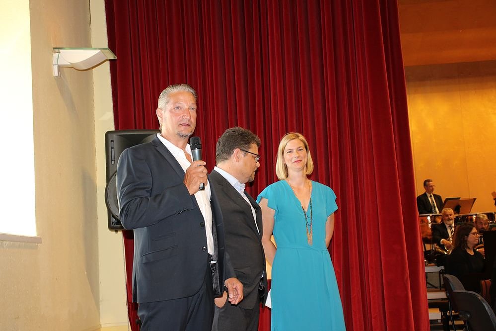 Die Prokuristin der Wippertal Kathlen Kühn, der Technik Vorstand der Glückauf, Eric Trute und der Geschäftsführer der Fortschritt, Volker Kämmerer (Mitte), begrüßten die Gäste. Erstmal nicht dabei sein konnte der Geschäftsführer der Wippertal Eckhard Wehmeier. Und es war schon das 19. Konzert.
