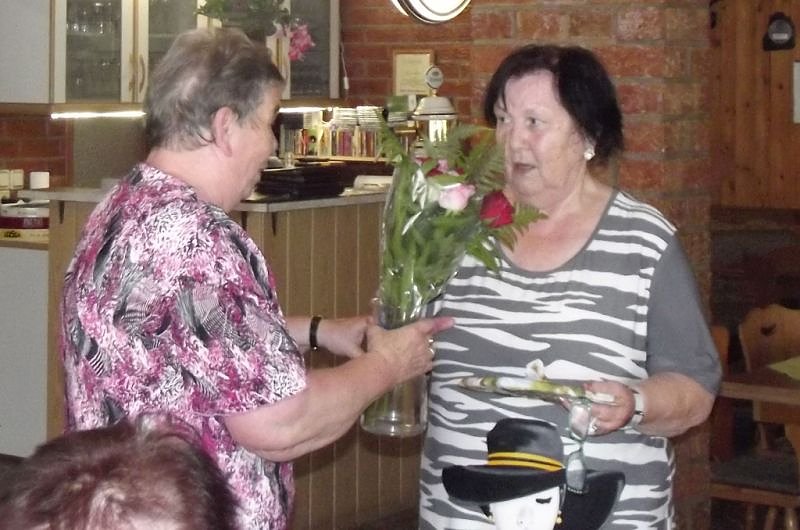 Nach der Kaffeetafel stellte Frau Dorl ihre selbst gehäkelten und attraktiven Perlenketten vor und bot diese auch zum Erwerb an. Sie können sich sicher das Funkeln in so manchen Frauenaugen vorstellen. Was soll ich sagen, bei unseren Seniorinnen gab es so reges Interesse dass alle mitgebrachten Ketten einen interessierten Abnehmer fanden. Christa Groß bedankte sich bei Frau Dorl mit einem Blumenstrauß und einem kleinen Präsent.