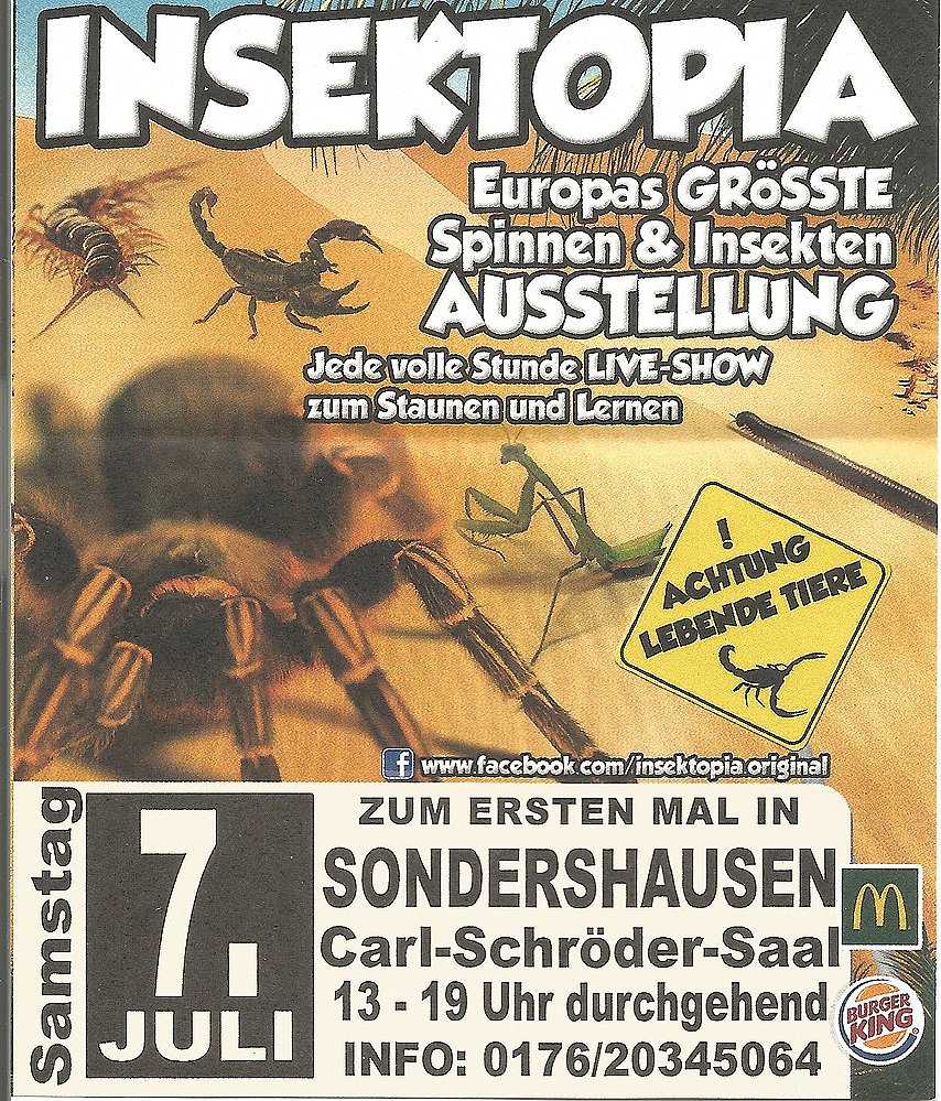 Nach Sundhausen am Wochenende kann man sie auch am Samstag in Sondershausen bewundern, die Schau Insektopia in Sondershausen...