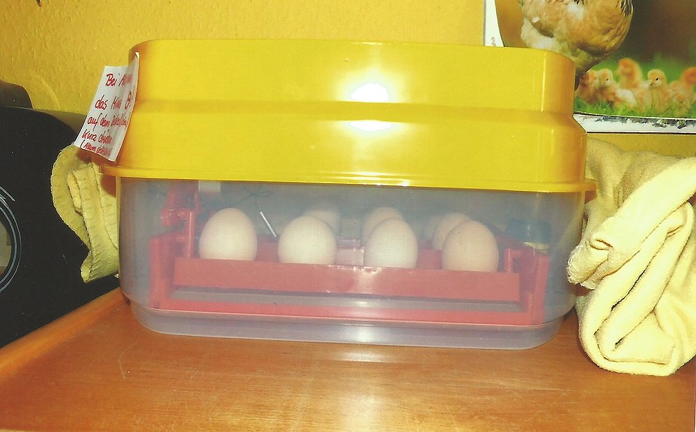 Da es natürlich nicht ging, eine Glucke zu besorgen, die Eier ausbrütet, suchte man eine Brutmaschine und wurde fündig. Nach dem man sich eingelesen hatte und auch genügend Informationen Informationen von der Mutti erhalten, machte man sich an die Planung.