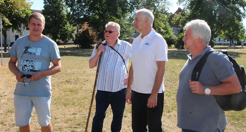 Bürgermeister Matthias Strejc (SPD) hier mit Ortswegewart Lutz Rückebeil Mathias Kaiser vom MDR (bekannt aus vielen Veranstaltungen) und Peter Möbius vom Stadtmarketing Bad Frankenhausen, übernahm die Begrüßung, bevor es dann in Richtung Barbarossahöhle ging.