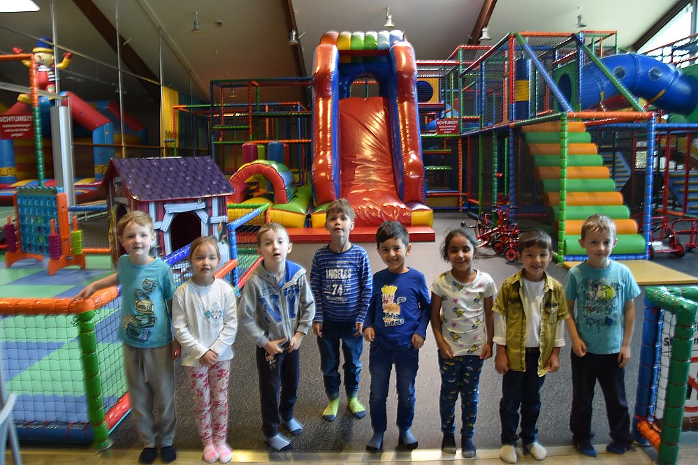 Bereits die Zugfahrt war für viele Kinder ein großes Erlebnis. Angekommen im Regenbogenland öffneten die Pforten an diesem Vormittag nur für uns. Davon begeistert, den ganzen Indoorspielplatz für sich zu haben, wurde nach Herzenslust getobt und gespielt. Zum Mittag erwartete uns ein liebevoll gedeckter Tisch und wir ließen uns Pommes und Nuggets schmecken.