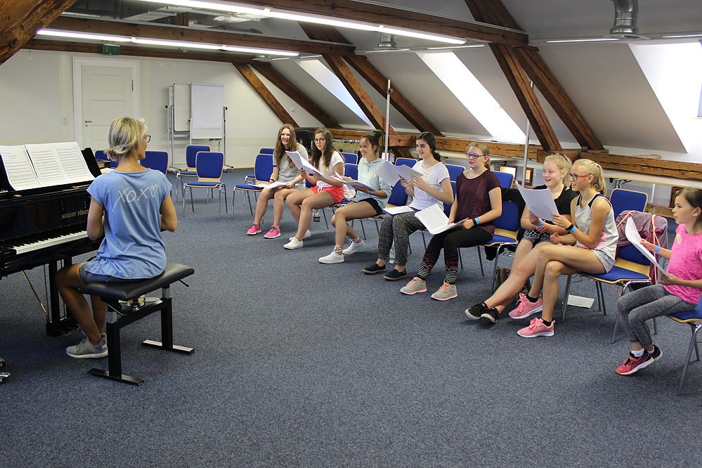 Mit 26 Jugendlichen aus Deutschland und Polen ist am Sonntag das Musical-Sommercamp der Thüringer Landesmusikakademie Sondershausen gestartet. Am Montag fand die erste Unterrichtseinheit mit dem Song We go together aus dem Musical Grease statt.
