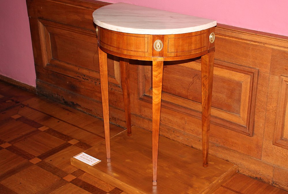 Es handelt sich um eine Demilune-Konsole (Demi Lune = Halbmond) und einen Toilettentisch.