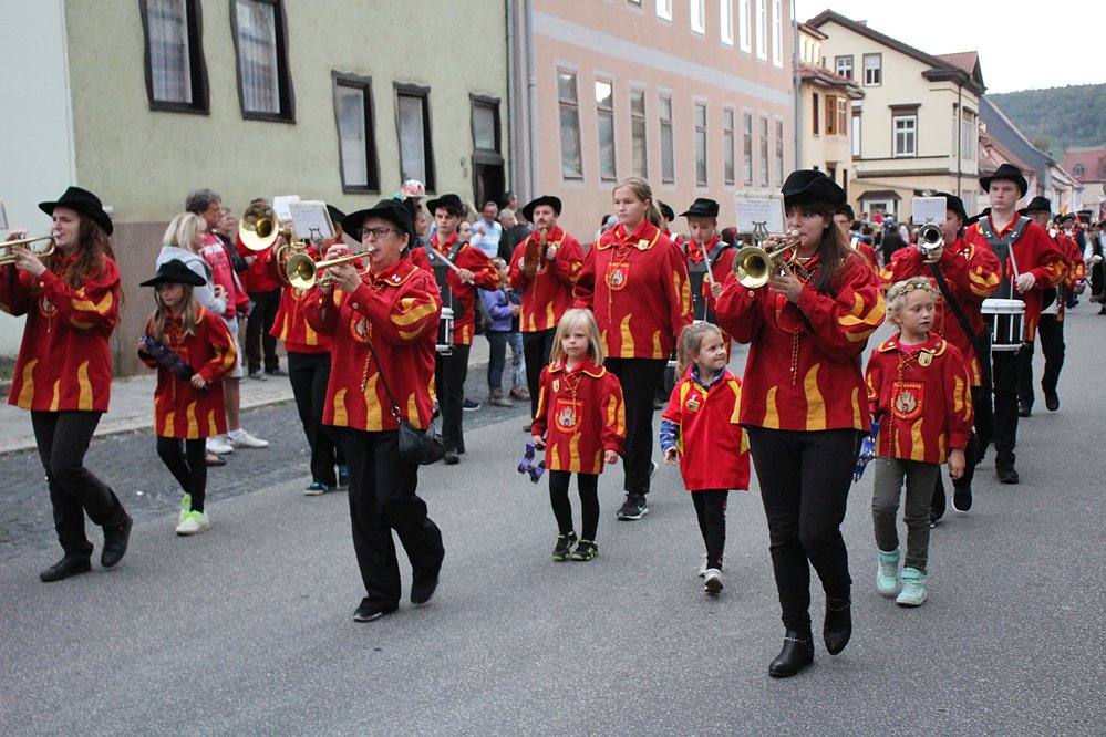 Der Frankenhäuser Fanfarenzug führte wieder den Umzug an und wurde von weiteren fünf Spielmannszügen unterstützt. Na hoffentlich hat sich kn nicht verzählt.