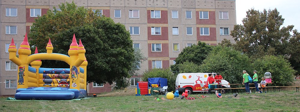 Autor: khhAls dieses Foto entstand, kurz nach 15:00 Uhr hatten sich schon einige der Gäste des Wohngebietsfestes das Feld geräumt und hatten sich schon Plätze im Düne-Stübchen des Bürgerzentrums Cruciskirche gesichert.
