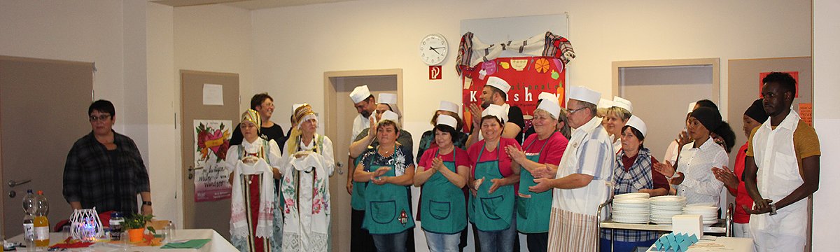 Gekocht wurden deutsche, russische und tschetschenische und syrische Gerichte. Und zwischen durch immer wieder Tänze, so aus Tschetschenien.