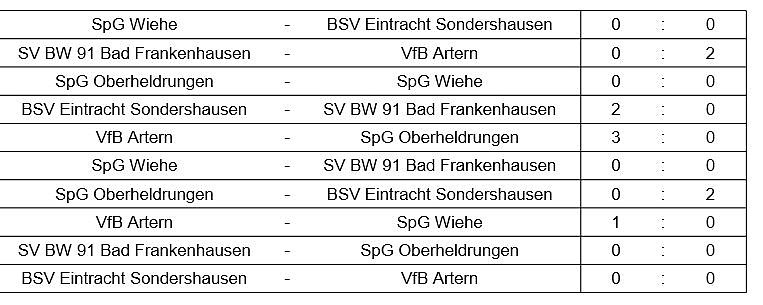 1. SV BW 91 Bad Frankenhausen Tore 6 : 0 Punkte 10
