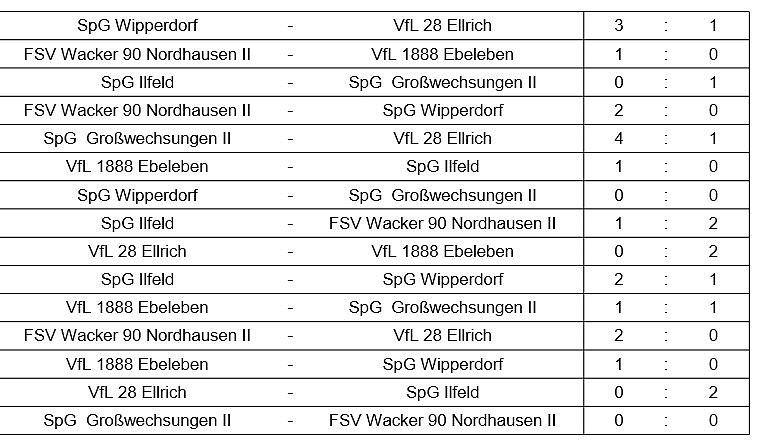 6. VfL 28 Ellrich Tore 2 : 13 Ponkte 0