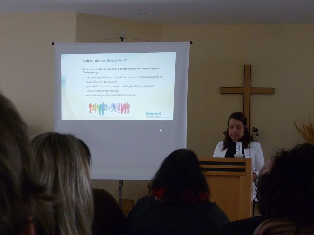 Das erste Referat hielten die Kolleginnen der Psychosozialen Beratungsstelle für Suchtkranke, -gefährdete und deren Angehörige. Frau Pölzing und Frau Tettenborn haben ihre Wahrnehmungen/ Veränderungen in der täglichen Arbeit mit den Klienten dargestellt. Hier laufen i.d.R. die Klienten erstmalig im Suchthilfesystem auf. Frau Tettenborn hat hierbei den Bereich Sondershausen und Frau Pölzing den Bereich Artern beleuchtet. Gibt es regionale Unterschiede? Wer vermittelt und welches Klientel kommt in der PSBS an?
