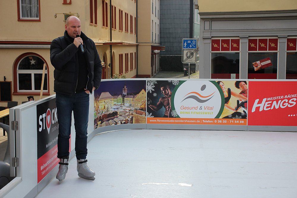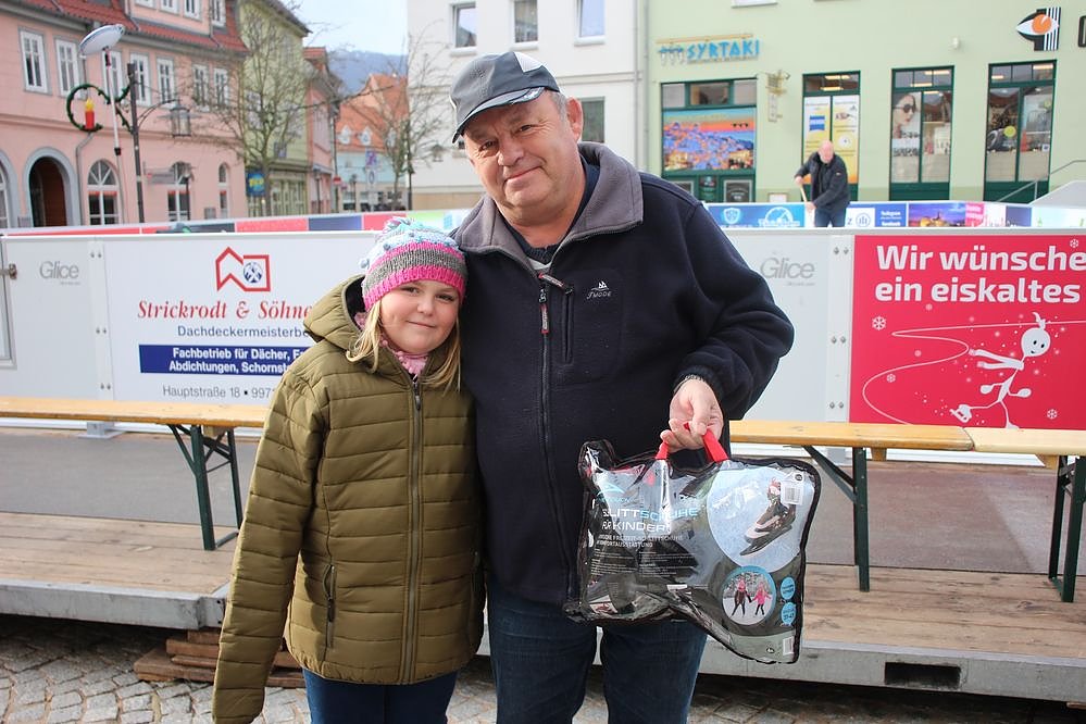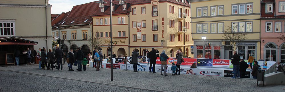 Auf dem Sondershäuser Marktplatz eröffnete heute die Kunsteisbahn und sie wurde sofort in Beschlag genommen...