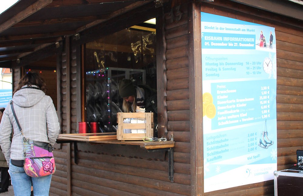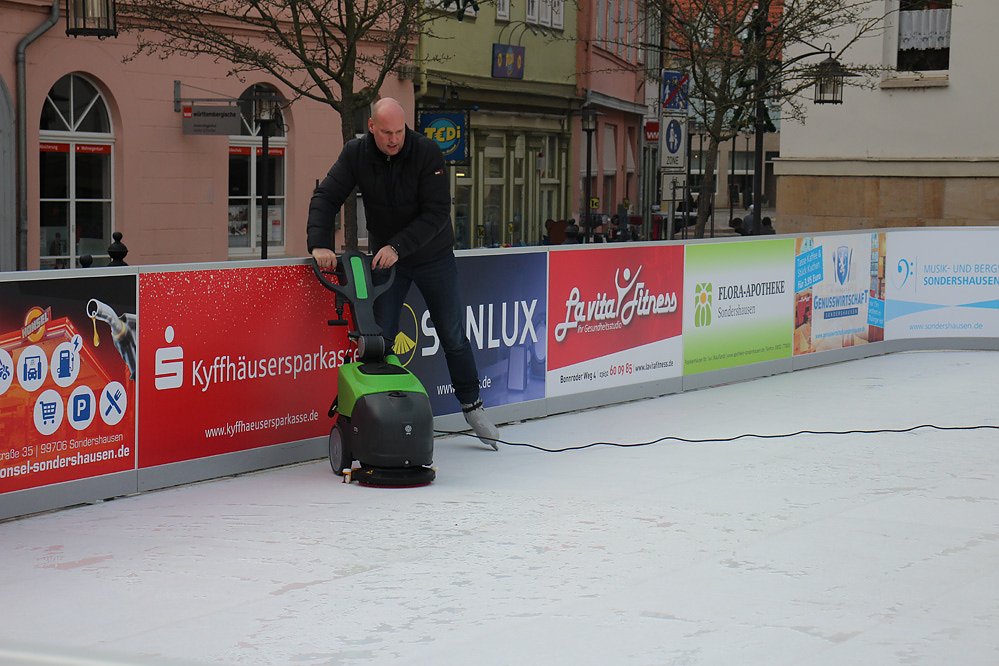 In der Zeit vom 1. Dezember bis 27. Dezember wird die Kunsteisbahn stehen. Es werden Schlittschuhe verliehen, und Lauflernfiguren können ebenfalls ausgeliehen werden (siehe Bildergalerie).