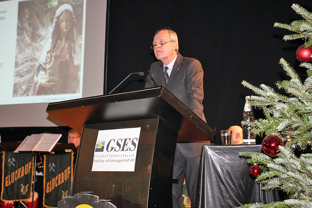 Im Rahmen der Barbarafeier waren zahlreiche Gäste in den Festsaal nach unter Tage gekommen, so Dr. Caspar Glinz (Hauptgesellschafter Schmidt, Kranz und Co. GmbH), die Lantagsmitglieder Babett Pfefferlein (Grüne), Dorothea Marx (SPD) und Manfred Scherer (CDU), Landrätin Antje Hochwind, Sondershausens Bürgermeister Steffen Grimm (pl), der Leiter des Thüringer Landesbergamtes Hartmut Kießling, sowie Führungskräfte der V.V.G Verwertungs- und Vertriebs GmbH, vom Schachtbau Nordhausen und der Hochschule Nordhausen.