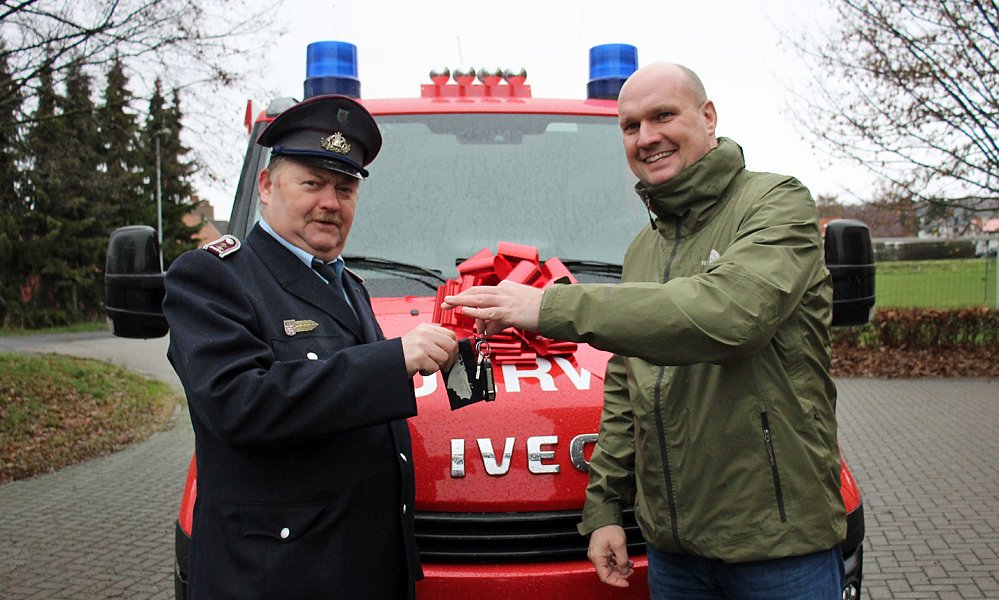 Der Bürgermeister der Stadt Sondershausen, Steffen Grimm, übergab die Schlüssel offiziell an den stellvertretenden Wehrleiter Hartmut Thomuscheit.