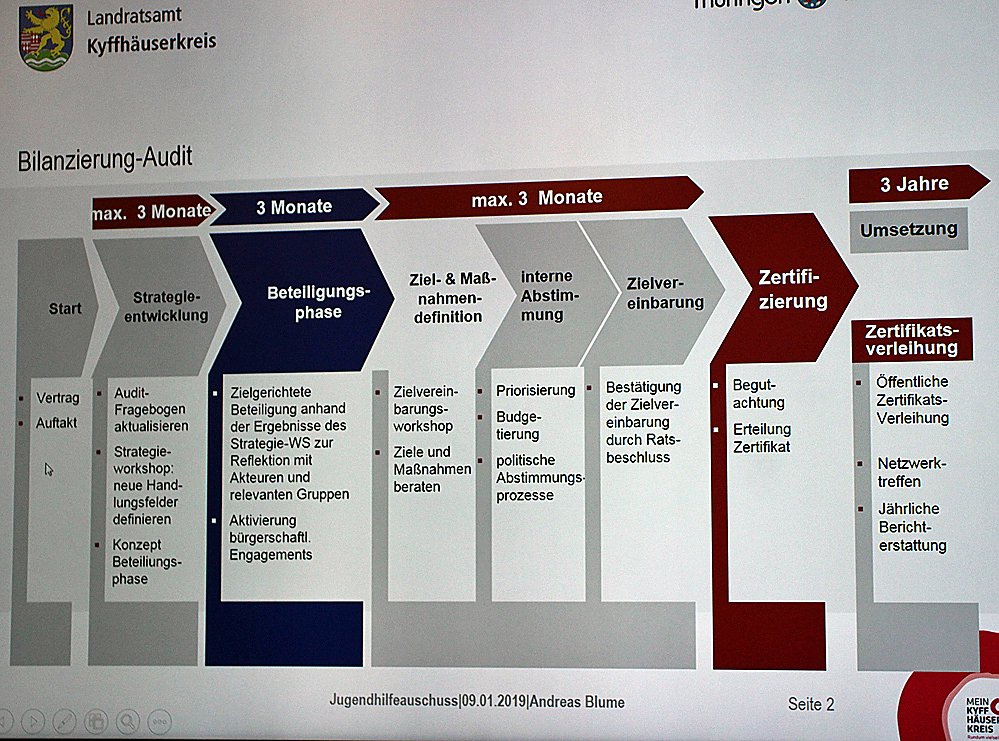 Der Kyffhäuserkreis und die Stadt Bad Frankenhausen werden ihren Auditprozess Familiengerechter Landkreis bzw. Familiengerechte Kommune in einem Bilanzierungsaudit fortsetzen und die Stadt Sondershausen wird den Weg hin zur Familiengerechten Kommune aufnehmen. Dazu fand heute im Landratsamt die Auftaktveranstaltung statt. Der Startsschuss war am 25.10.2018 in Sondershausen erfolgt, kn berichtete.