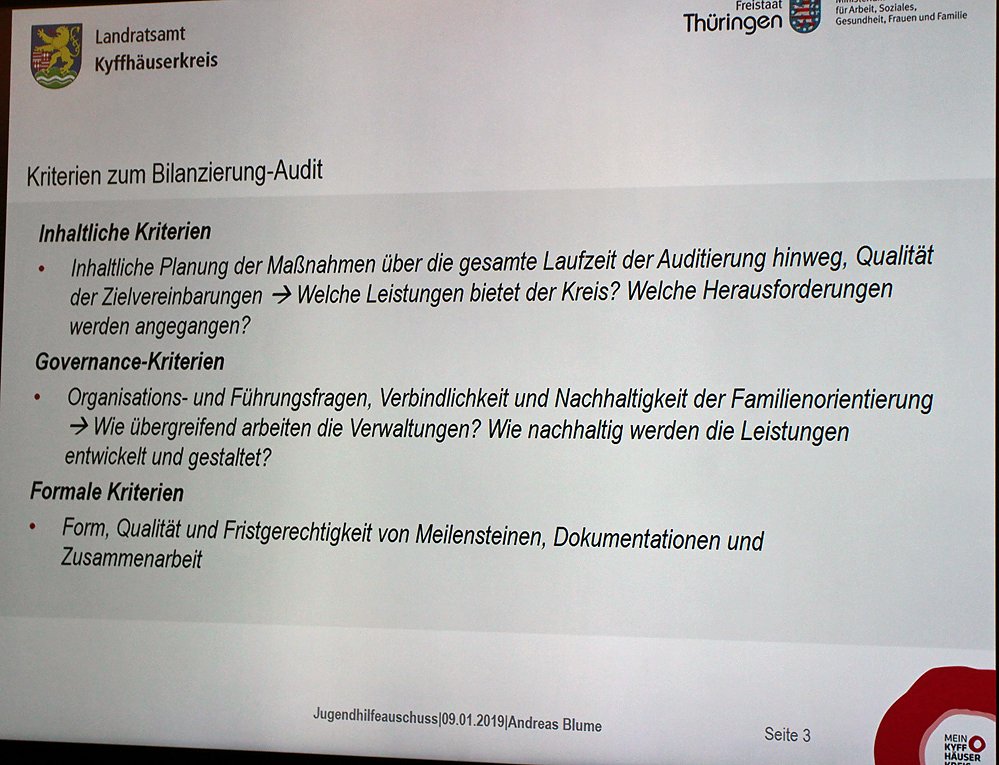 Autor: khhDer Kyffhäuserkreis und die Stadt Bad Frankenhausen werden ihren Auditprozess Familiengerechter Landkreis bzw. Familiengerechte Kommune in einem Bilanzierungsaudit fortsetzen und die Stadt Sondershausen wird den Weg hin zur Familiengerechten Kommune aufnehmen. Dazu fand heute im Landratsamt die Auftaktveranstaltung statt. Der Startsschuss war am 25.10.2018 in Sondershausen erfolgt, kn berichtete.
