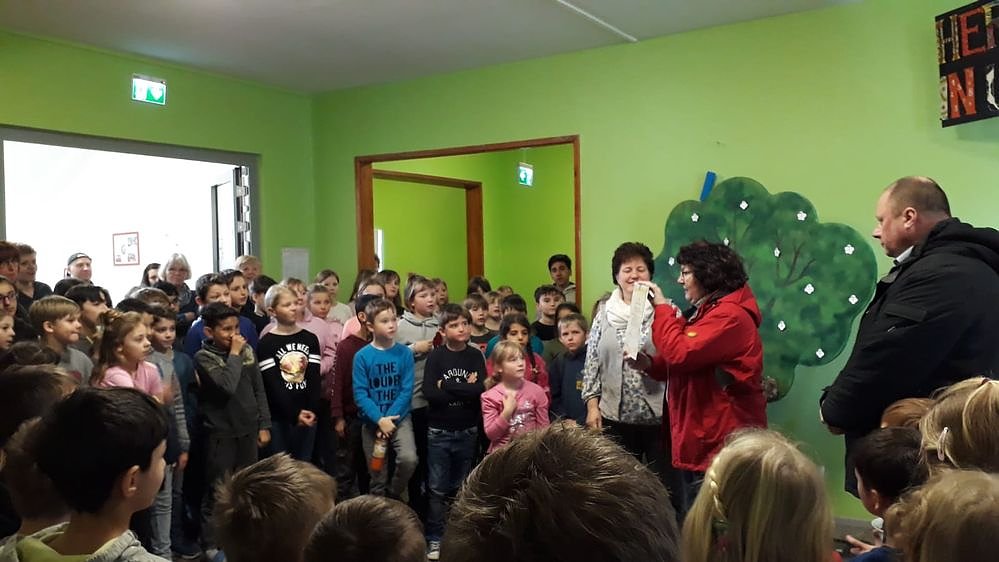 Die Kinder hatten mit Ihren Lehrerinnen für die Auszeichnung ein kleines Programm vorbereitet, was mit viel Freude und Begeisterung vorgetragen wurde.