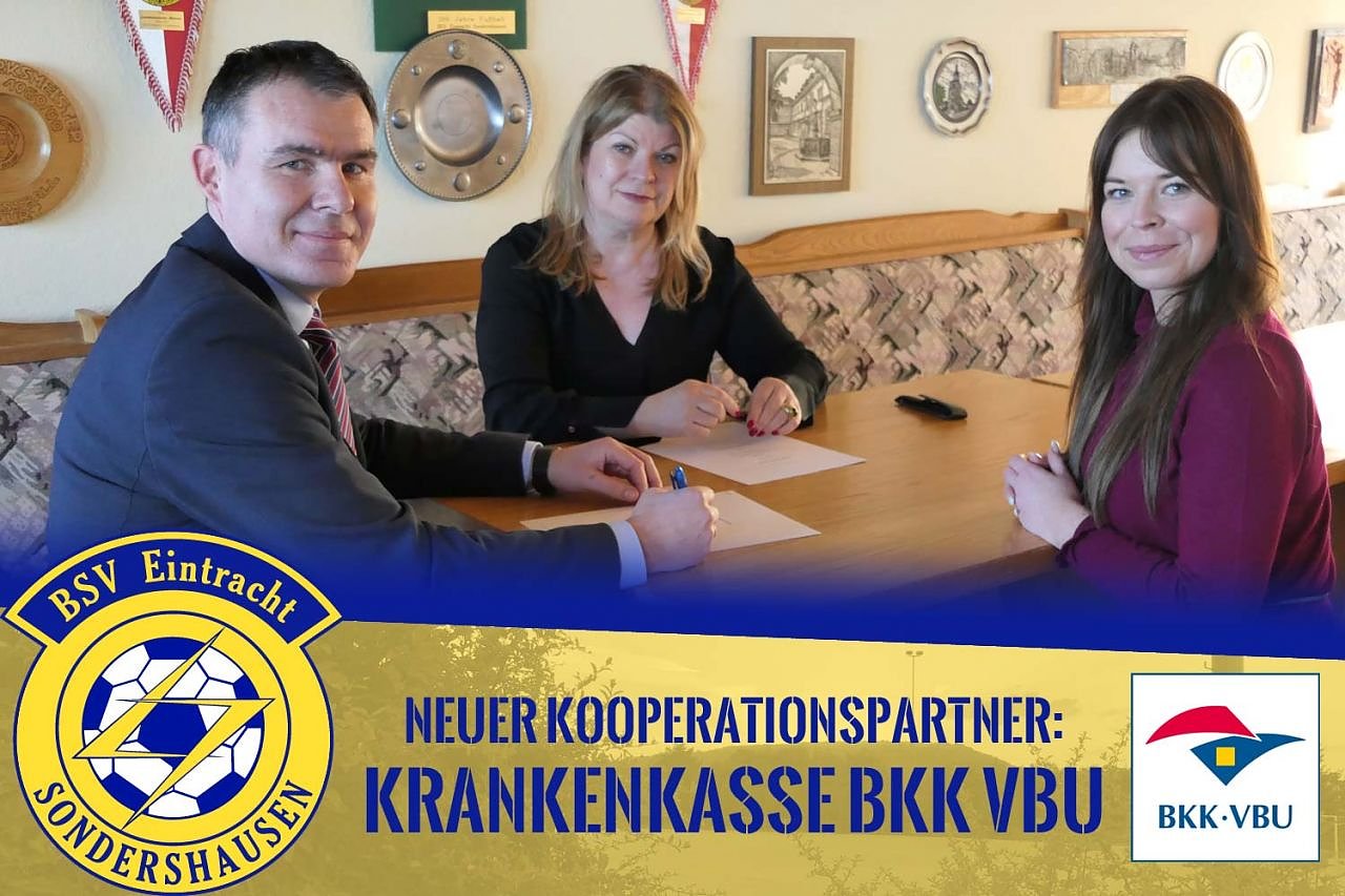 Bereits Ende Februar fand die Vertragsunterzeichnung zwischen der Regionalleiterin Mitteldeutschland der Krankenkasse BKK VBU, Frau Andrea K. Sewcik, und dem Sportlichen Leiter des BSV Eintracht Sondershausen, Matthias Springer, statt.