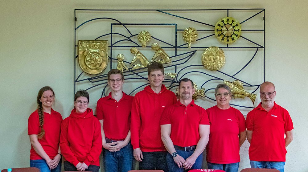 Foto der neuen Leitung v.l.n.r.: Anica und Antje Backhaus, Tim Rabenhold, Hanno Richter, Daniel Rabenhold, Angelika Jäger, Klaus-Dietrich Zahn.