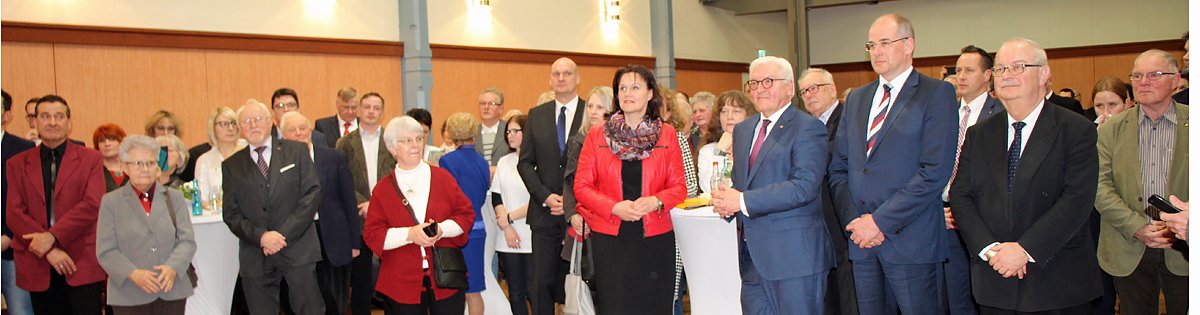 Eröffnet hatte den Empfang der Bundespräsident Frank Walter Steinmeier (SPD) selbst. Land in Sicht – Zukunft ländlicher Räume, das heißt wir wollen diese Gebiete nicht abhängen, sondern weiter entwickeln. In seiner Rede gab er eine Überblick über sein heutiges Besuchsprogramm vom Schachtbau Nordhausen, über den Besuch der TGS Greußen, dem Bergwerk (GSES), dem Gespräch mit Jugendlichen über Demografie, dem Besuch des Bürgerzentrums Cruciskirche Sondershausen und diesem Empfang.