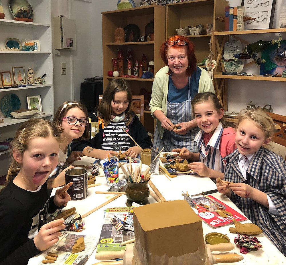 Die Kinder hatten viel Spaß beim Pinchen von Schüsselchen und Bauen von Schildkröten. Auch die mitgekommene Mama und Oma probierten sich am Gestalten des Tons und hatten ihre Freude daran. Mit Spannung wurde der Abschluss des Brennvorgangs erwartet, denn danach konnte jedes Kind seinen Eltern stolz die Ergebnisse seiner Arbeit präsentieren.