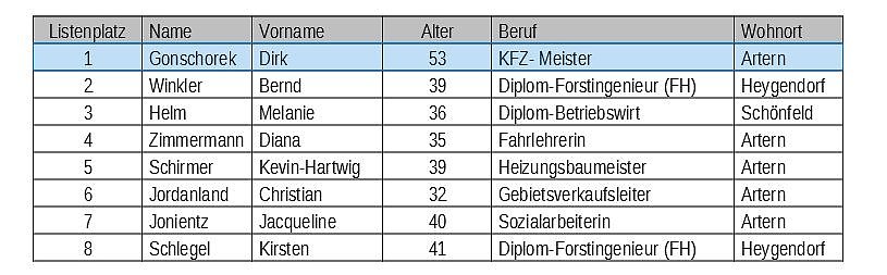 Kandidaten für Artern
