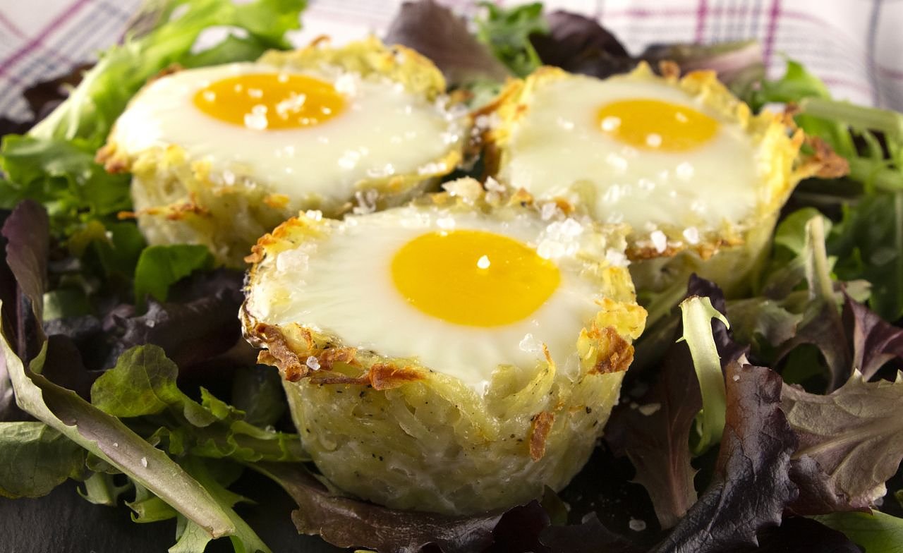 Rezept für 8 gebackene Eier im Rösti-Nest