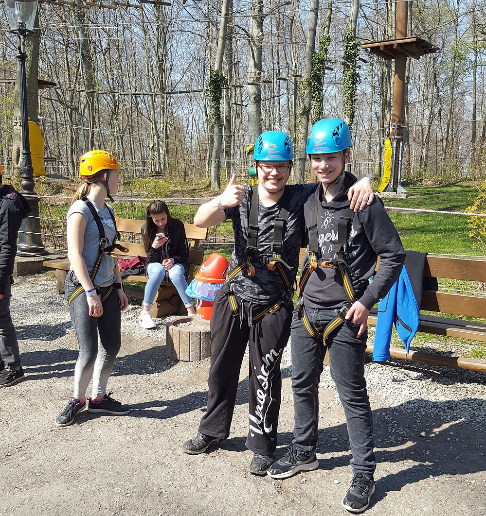 Feriengruppe auch zum Klettern im Freizeitpark Possen”