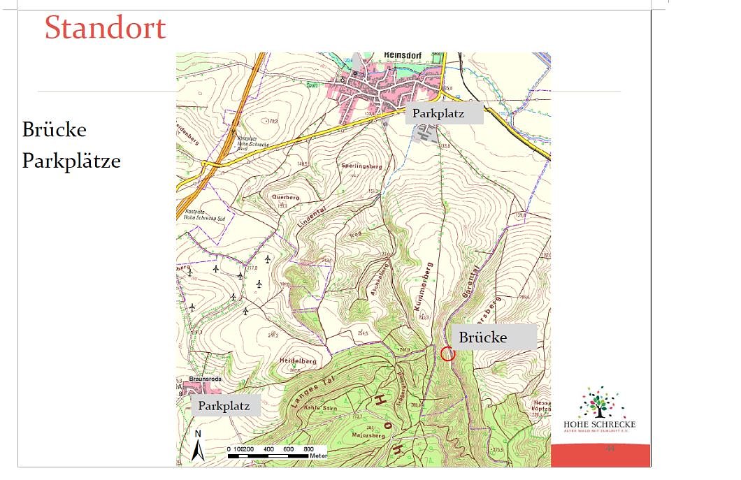 Am Freitag, 17. Mai 2019, lädt der Verein Hohe Schrecke – Alter Wald mit Zukunft e.V. zu einer Wanderung zur Baustelle der Hängeseilbrücke im Bärental ein. Der Bau hat noch nicht begonnen und dennoch gibt es viel zu erzählen.