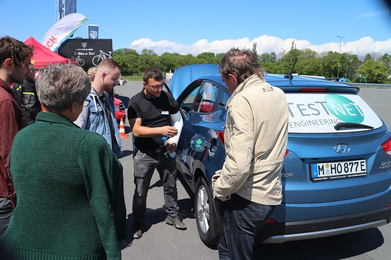 Wer wollte, konnte das auch das fahren mit Wasserstoff ausprobieren. Den Unterschied zum Akku-Auto bemerkt man erst beim öffnen des Tankdeckels. Bis zum Nachmittag habe man knapp 1.000 Besucher gezählt, schätzte Sebastian Kupfer von Intrasol, kein schlechtes Ergebniss für den ersten Anlauf, gekommen seien nicht nur die Nordhäuser, auch aus dem weiteren Nordthüringer Raum hätten Leute ihren Weg zum Autodrom gefunden.