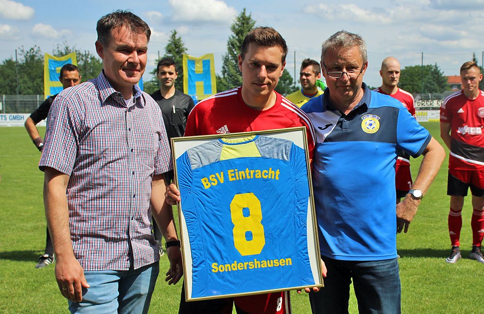Am Nachmittag wurden vor dem letzten Heimspiel des BSV Eintracht Sondershausen drei Spieler sowie ein Schiedsrichter verabschiedet...