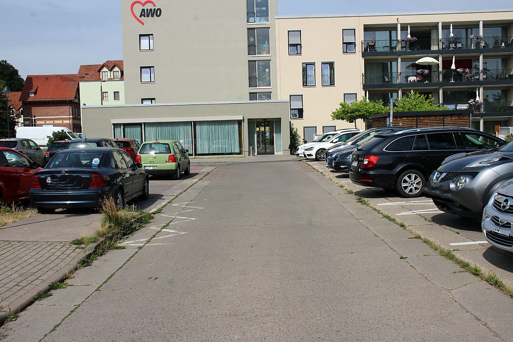 Das ändert sich allerdings schnell. Ausgerechnet dort, wo die Seniorenresidenz in unmittelbarer Nähe ist, gibt es überhaupt keinen Fußweg mehr. Dort, wo viele Senioren teils mit Rollatoren und Rollstühlen unterwegs sind, existiert überhaupt kein Fußweg mehr. Hier müssen die Senioren auf die Straße ausweichen, obwohl sich oft die Pkw bei der Parkplatzsuche rasant nähern.