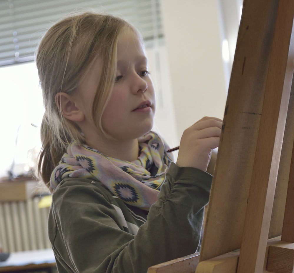 Erstes Problem ist das Mischen der Farben auf der Palette, dann noch der nuancierte Farbauftrag und zu guter Letzt das sich Lösen von der erlebten Gegenstandsfarbigkeit. Oft gelingt es ihnen noch nicht, das Bild als etwas eigenständiges, als ein von der gesehenen Wirklichkeit unabhängiges Gebilde zu begreifen, dessen Farbigkeit ganz eigenen Gesetzen zu folgen hat. Und so löst ein blaues Pferd in einem Gemälde von Franz Marc oder ein grüner Himmel bei Feininger Erstaunen bei ihnen aus. Seltsamer Weise sind kleinere Kinder darin unbefangener, folgen mehr ihrer Intuition, als größere, die stärker an der erlebten Gegenstandsfarbigkeit kleben. Und wenn man ihnen davon abrät, ganz hilf- und ratlos vor ihrem Bild stehen. Und bei all diesen Problemen sollen sie nun noch mit scheinbar unzulänglichen Malinstrumenten wie Malspachtel, Palettenmesser und vielleicht auch den eigenen Fingern malen. Das Abenteuer ist damit vorprogrammiert. Auf die Resultate darf man gespannt sein. Einige davon zeigt vielleicht die nächste JugendKunstBiennale im Künstlerdorf Friedrichsrode 2020?