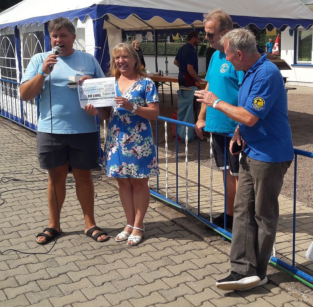 Beim traditionellen 24-Stunden-Schwimmen ging es darum, so viele Kilometer als möglich abzuspulen, weil Sponsoren für jeden Kilometer eine Spende für die Erhaltung der Sport- und Erholungsstätte zahlen. Auch die Landtagsabgeordnete Dr. Iris Martin-Gehl (DIE LINKE) ließ es sich nicht nehmen, mit 20 Bahnen einen geschwommenen Kilometer beizusteuern. Gleichzeit spendete sie dem Badesportverein Großfurra 100 Euro.