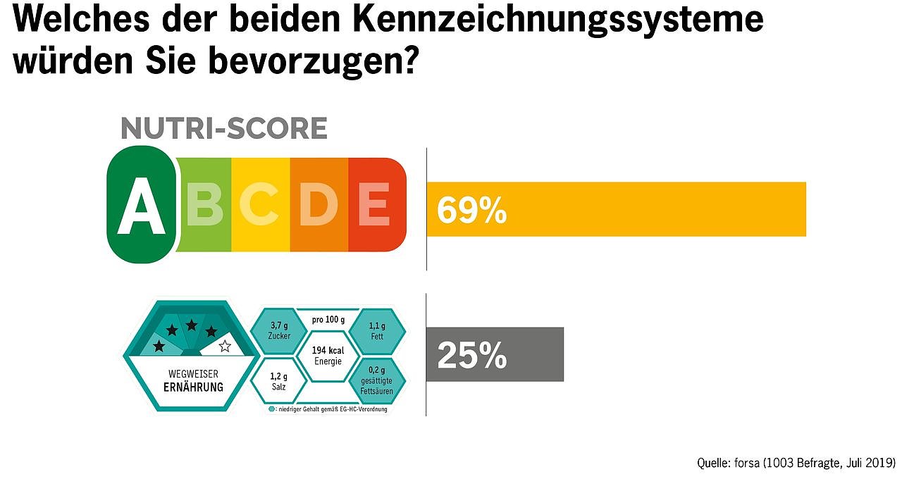 69 Prozent der befragten Personen bevorzugten den Nutri-Score gegenüber dem von Bundesernährungsministerin Julia Klöckner in Auftrag gegebenen Kennzeichnungsmodell "Wegweiser Ernährung". Der "Wegweiser Ernährung" fiel beim Großteil der Verbraucherinnen und Verbraucher durch: Nur 25 Prozent sprachen sich für das Modell aus - die Mehrheit der Befragten beurteilte es im Vergleich eher als "kompliziert" und "verwirrend". Die Organisationen forderten Ernährungsministerin Klöckner auf, im Kampf gegen Fehlernährung keine Zeit mehr zu verlieren und schnellstmöglich den Nutri-Score einzuführen.