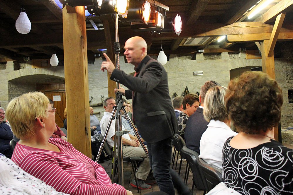 Autor: khhKabarettist Frank Sauer war mit seinem Programm "Mit Volldampf in die Sackgasse" in den Historischen Ochsenstall im Klostergut Mönchpfiffel gekommen.