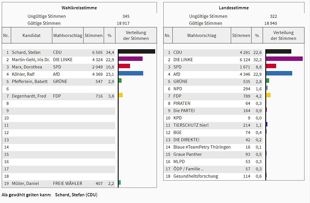 In Gorsleben hatte man sich verzählt und musste nochmals neu anfangen. Deshalb gab es eine Verzögerung bei der Bekanntgabe der vorläufigen Wahlergebnisse für den Wahlkreis 11. Aber Gorsleben waren bei weitem nicht die Letzten beim Auszählen in Thüringen.